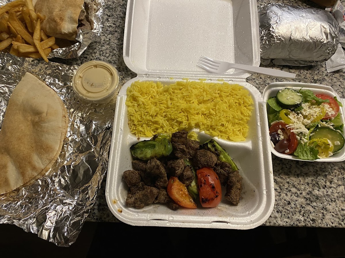 All around solid restaurant for Mediterranean cuisine. The flavor and bang for buck factor here are hard to beat, but that doesn’t mean there isn’t room for improvement. The staff were friendly but the interior atmosphere was a bit dingy and outdated. The falafel were crispy and delicious, though lacked flavor compared to other falafel I’ve had. The hummus was rich and satisfying but a bit too runny. The star of the show was the Athena chicken, which was well-marinated, grilled to have a slight char, and very tender, juicy, and flavorful especially alongside the sautéed onions and banana peppers. The portion was enough for a full lunch and leftovers for dinner. The pecan pastry was also a standout item, notable for how sweet, flaky, and buttery it was. The chocolate almond roll was a bit dry, as if it had been out too long. Overall I think 4 stars for this place is very fair; I’ve had better, but I did not regret eating here. Some items were just okay, others were great.